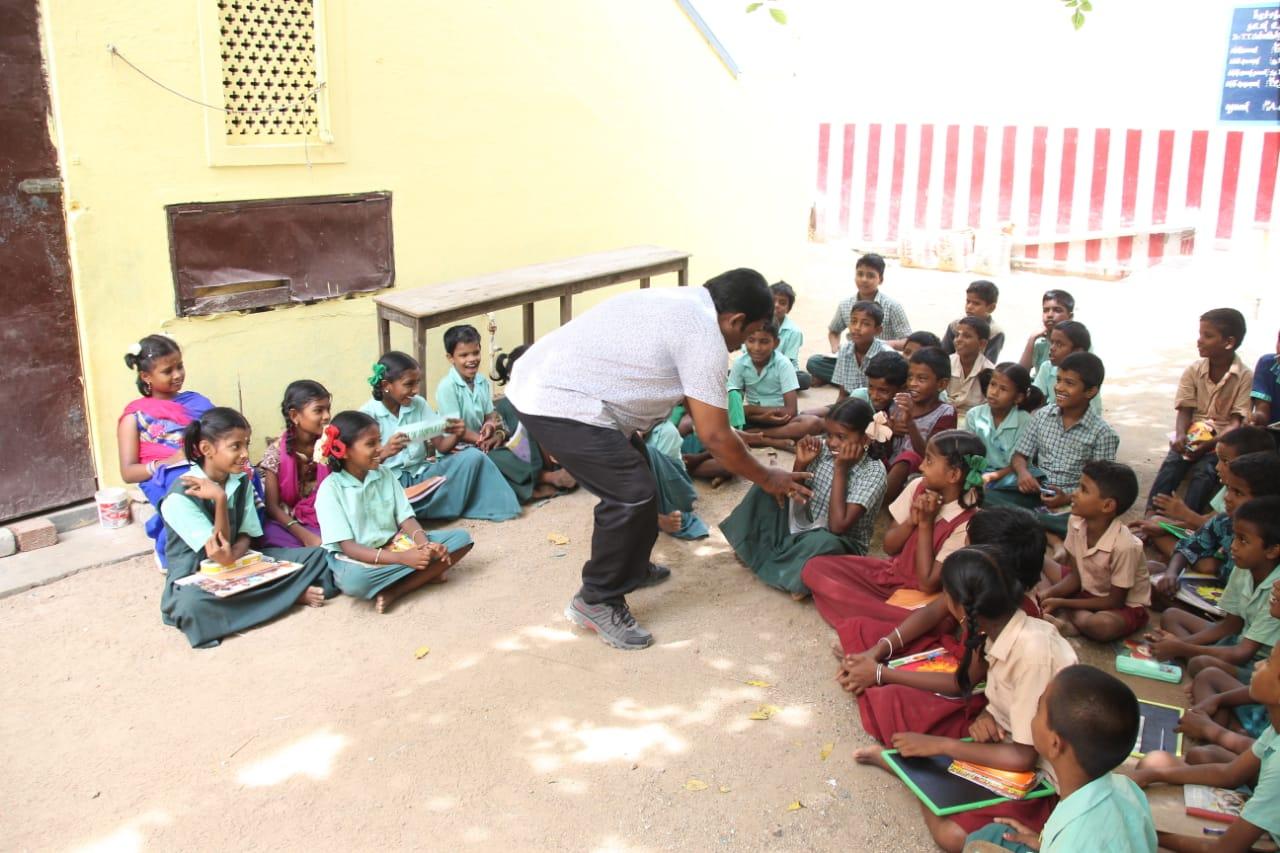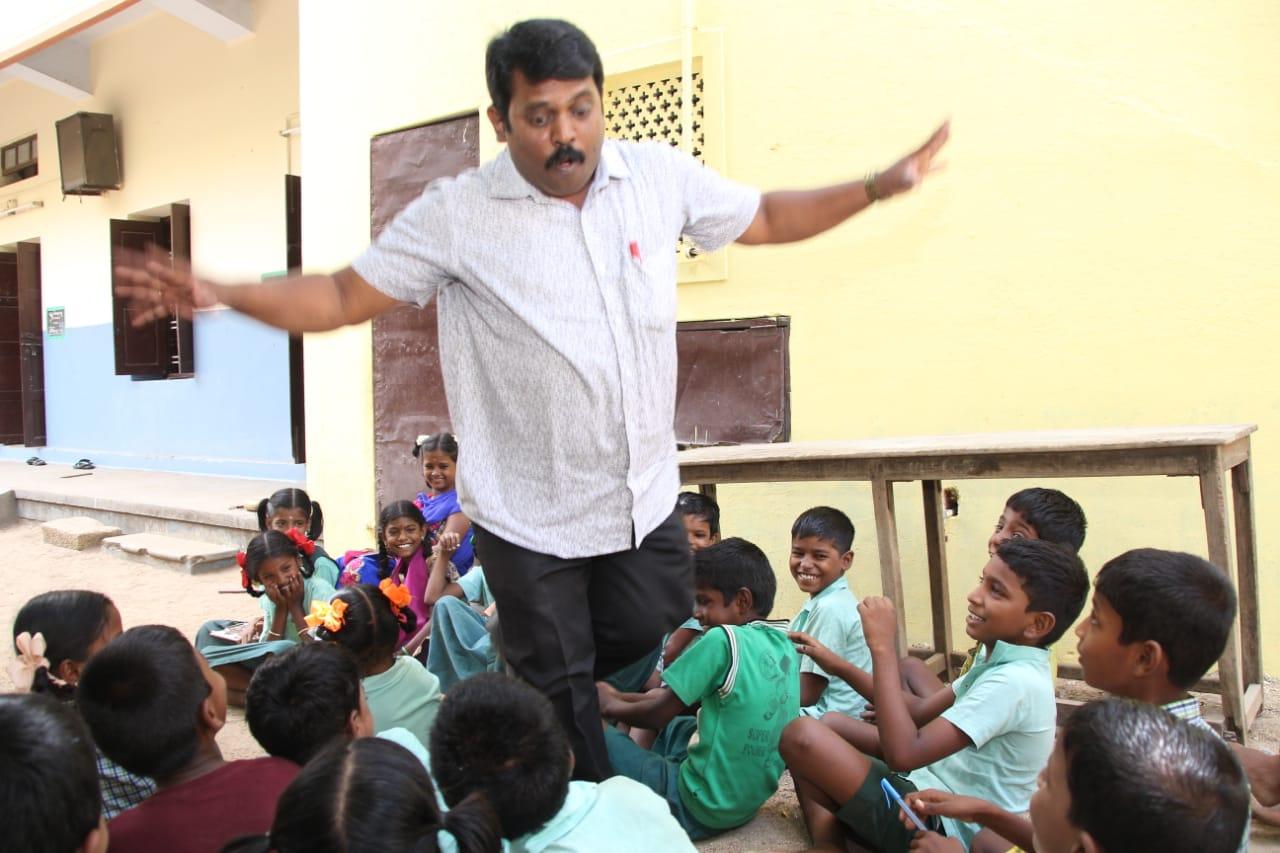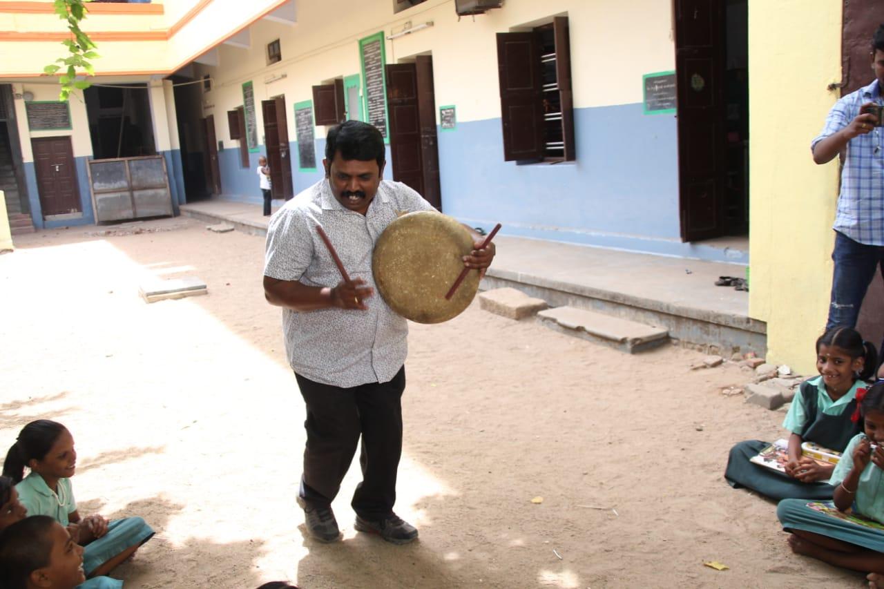 ``நான் 20 வருடங்களாக ஆசிரியர் பணியில் உள்ளேன். கடந்த 12 வருடங்களாக தலைமை ஆசிரியர் பதவியில் இருக்கிறேன். தொடர்ந்து ஆசிரியர் பணியில் இருக்கும் எனக்கு, கல்வி கற்பிக்கப்படும் முறையை மேம்படுத்த வேண்டும் என்ற எண்ணம் வெகுநாளாக இருந்தது. இதனால் கடந்த ஐந்து ஆண்டுகளாக மாணவர்களுக்குப் பிடிக்கும்படி பாடங்களை எளிமைப்படுத்தி கற்பித்துவருகிறேன். தற்போது இரண்டு வருடங்களாக நாடகம், விளையாட்டு, விநாடி வினா, பொது அறிவு கேள்வி பதில்கள் உள்ளிட்டவற்றைக் கற்பிக்கத் தொடங்கினேன். இதனால் மாணவர்களிடமும் பெற்றோர்களிடமும் நல்ல வரவேற்பு கிடைத்தது.