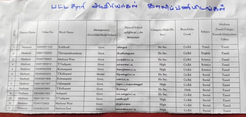 SMC மூலம் நிரப்பப்பட வேண்டிய முதுகலை / பட்டதாரி ஆசிரியர் பணியிட விவரங்கள் வெளியீடு - மதுரை மாவட்டம்