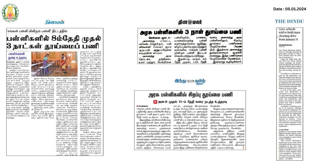 எங்கள் பள்ளி மிளிரும் பள்ளி திட்டத்தில் பள்ளிகளில் 8ம்தேதி முதல் 3 நாட்கள் தூய்மைப் பணி CLICK HERE TO DOWNLOAD
