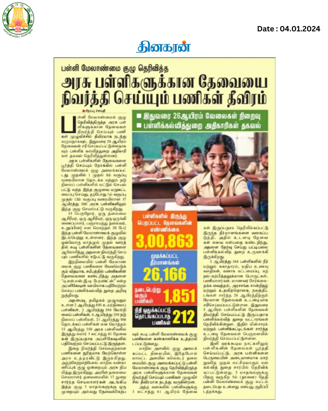பள்ளி மேலாண்மை குழு தெரிவித்த அரசு பள்ளிகளுக்கான தேவையை நிவர்த்தி செய்யும் பணிகள் தீவிரம் According to the School Management Committee, efforts are being made to address the demand for government schools CLICK HERE TO DOWNLOAD