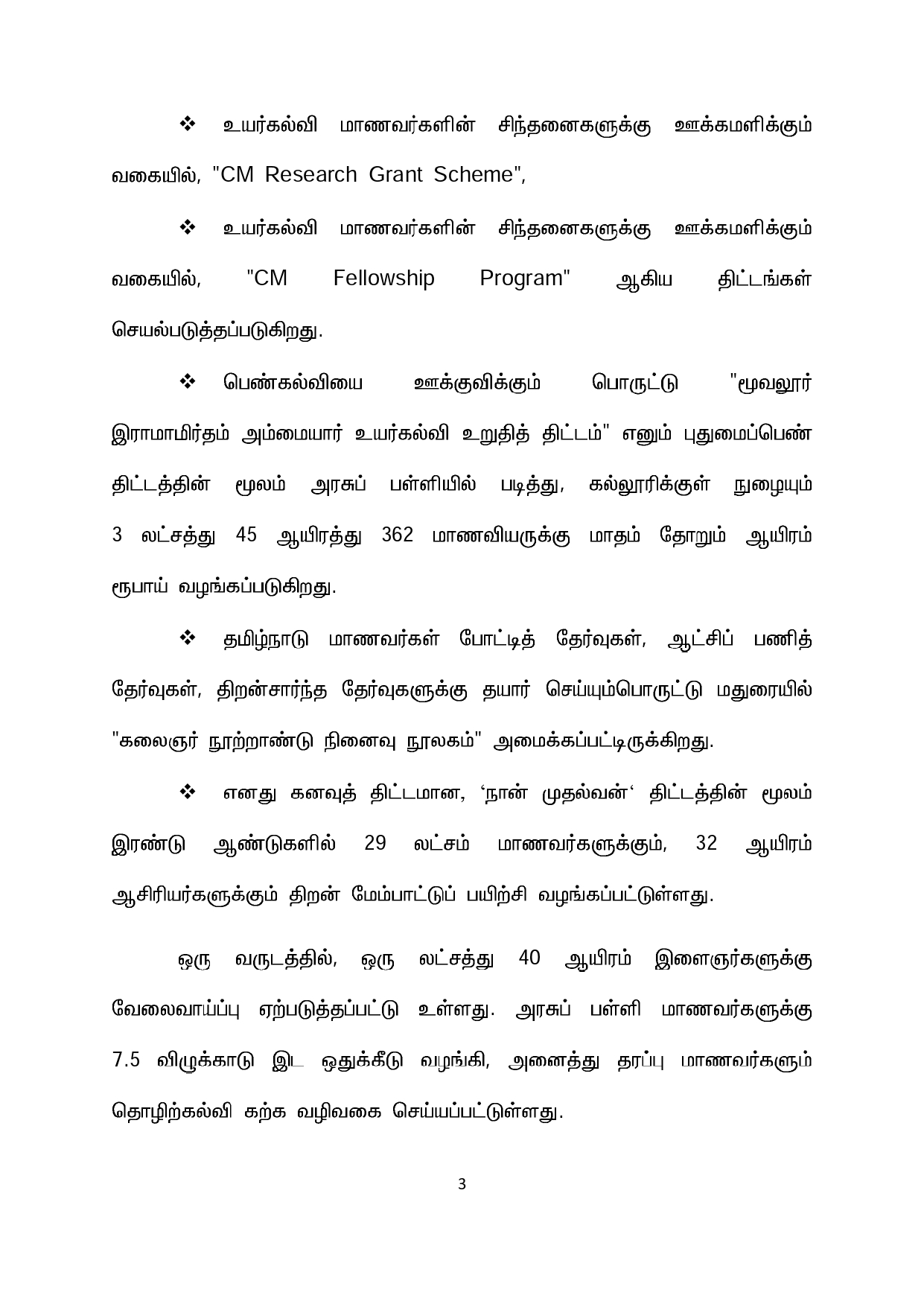 3 லட்சத்திற்கும் அதிகமான மாணவிகளுக்கு மாதம் ஆயிரம் ரூபாய் வழங்கப்பட்டு வருகிறது. கல்வித்துறையில் சமூக நீதி புரட்சியை திராவிட மாடல் அரசு நிகழ்த்தி வருகிறது.