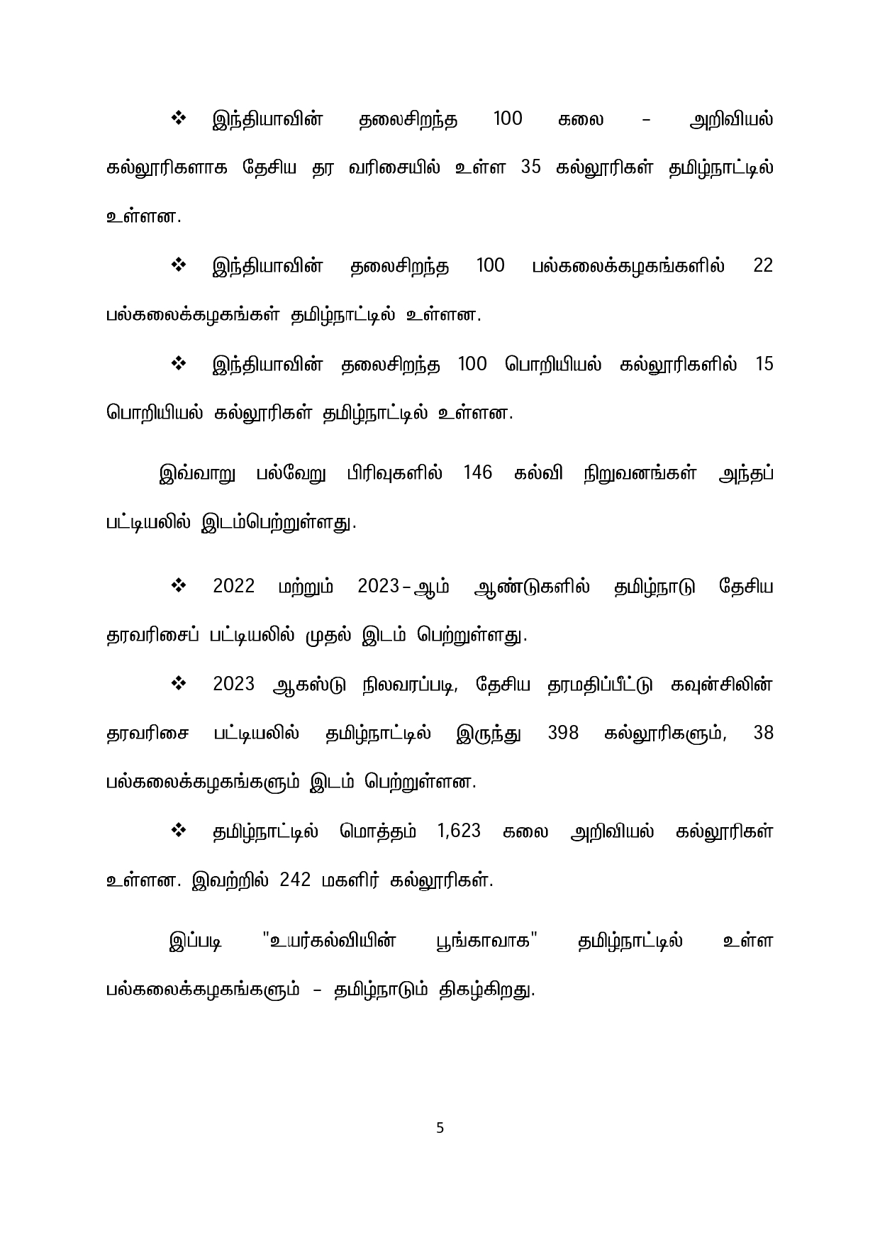 கல்வித்துறையின் பூங்காவாக தமிழகமும், அதன் கல்வி நிறுவனங்களும் திகழ்கிறது.